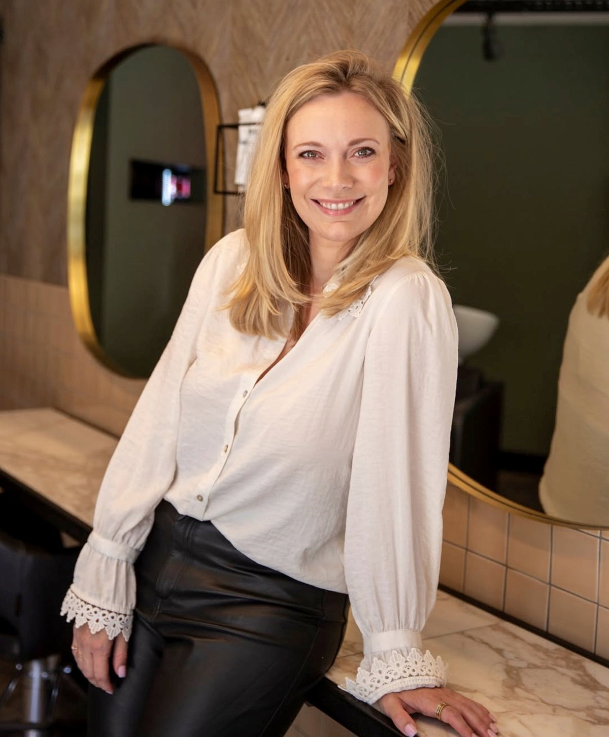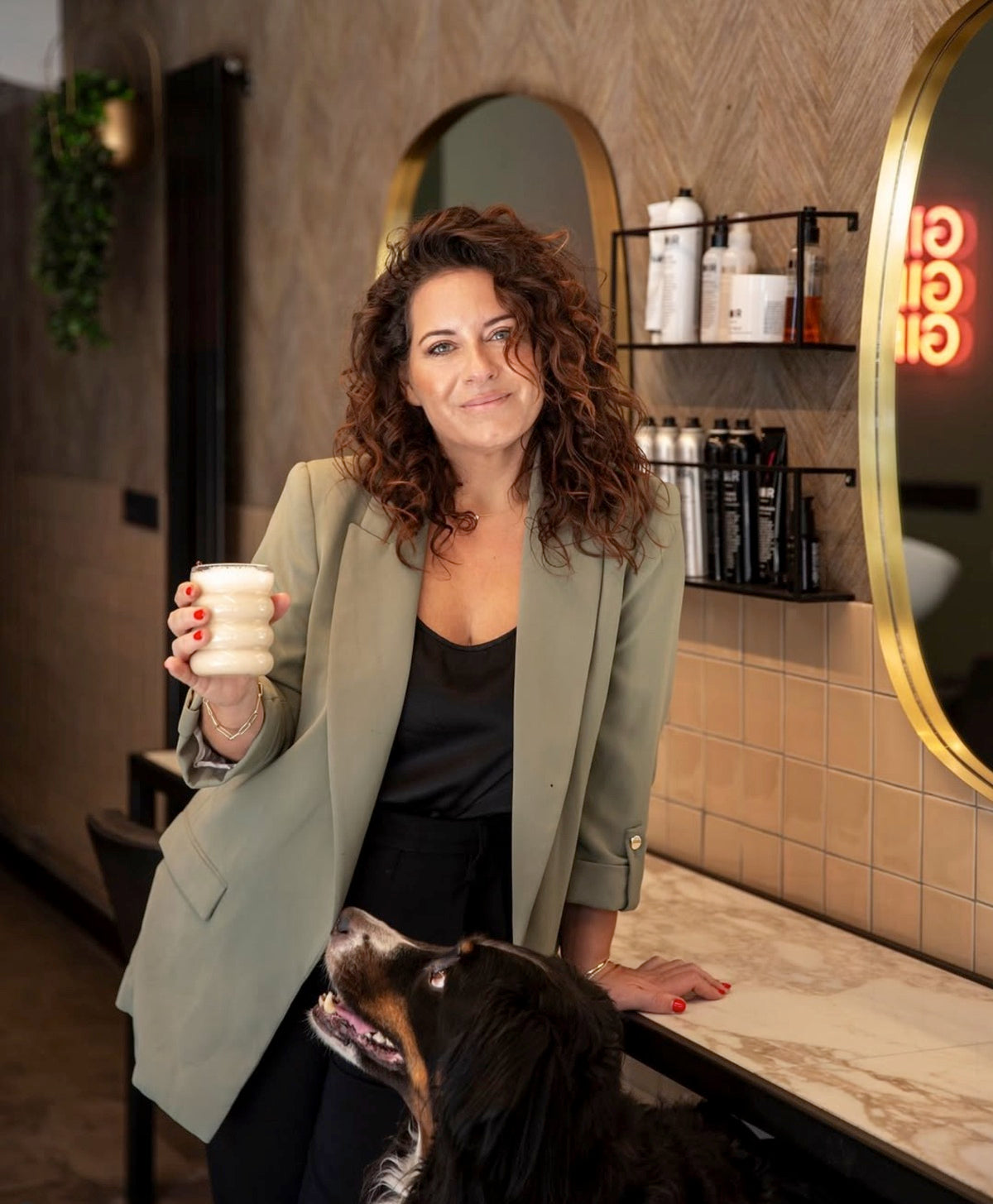 Werkpaard en luxepaard in één. Ongewenst single, maar gelukkig getrouwd met Blownaway. Moeder van een harige, vierpotige dochter genaamd Lola. Omarmt haar curves met verve. Belachelijk bruin in februari. Heeft het beste haar aan zee. Praat vijf kwartier in een uur. Komt tot rust op een massagetafel. Heeft een bloedhekel aan trage automobilisten. Is 1530 millimeter lang (liever niet omrekenen naar cm). Kampt met een serieuze zonnebrilverslaving. Heeft altijd alles onder controle; ook als ze dat niet heeft. Overwintert jaarlijks op Curaçao en bestookt thuisblijvers ongegeneerd met zonnige kiekjes. Neemt geen blad voor de mond, met als gevolg dat je áltijd een bloedeerlijk advies krijgt. Legt met liefde de juiste linkjes en brengt al föhnend haar hele netwerk met elkaar in contact. Favoriete lectuur: elke menukaart.